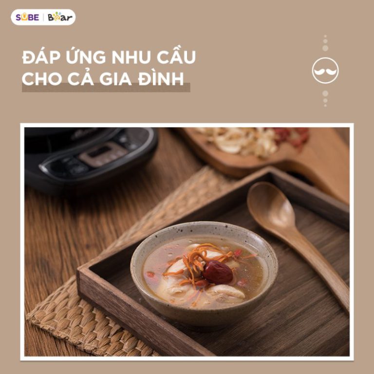 Chức năng này dùng để nấu súp thịt, súp rau củ, hầm gà thuốc Bắc, hầm chân giò… rất tiện. Chỉ cần sơ chế các nguyên liệu rồi cho vào thân ấm, chọn chức năng “Nấu súp” là xong, không cần phải canh lửa, canh thời gian như cách nấu truyền thống.