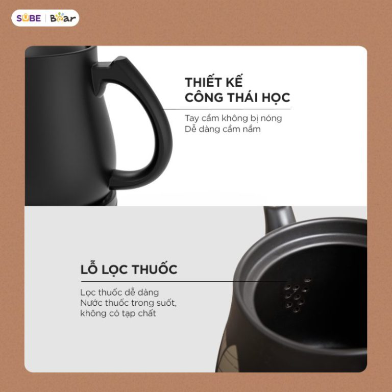 Ấm sắc thuốc Bear được làm từ chất liệu sứ cao cấp, mang lại nhiều lợi ích vượt trội cho người sử dụng: