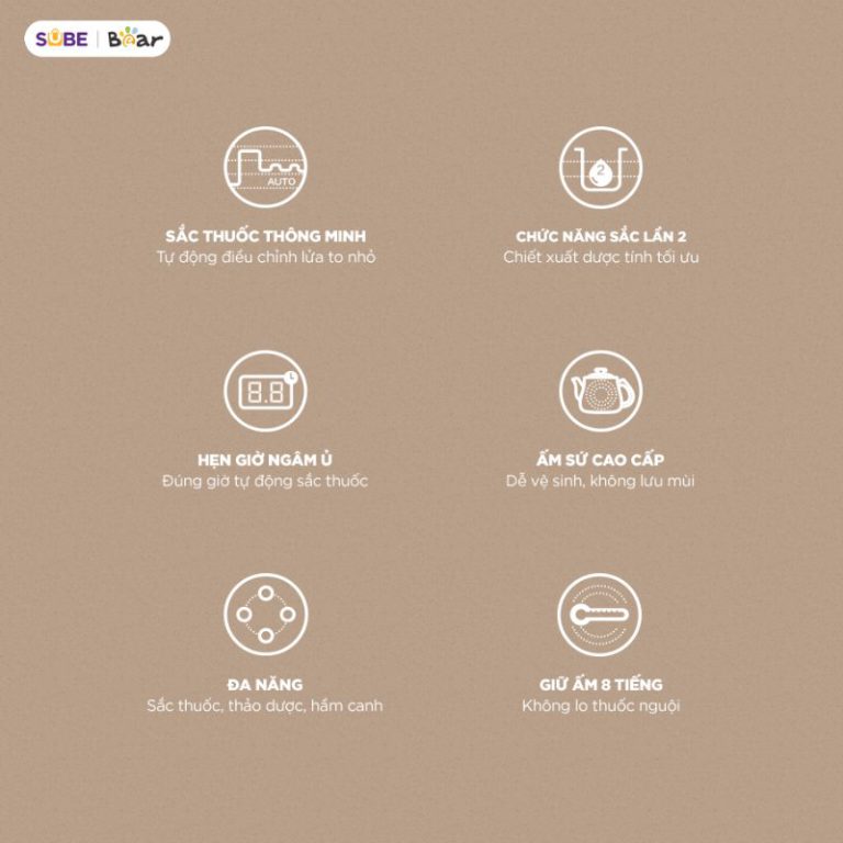 | Chức năng | Sắc thuốc, trà thảo dược, nấu súp, hầm gà, hầm chân giò, hẹn giờ, giữ ấm |