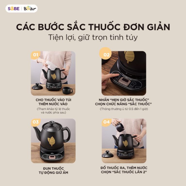 Hướng dẫn sử dụng ấm sắc thuốc Bear HTM-4H40X