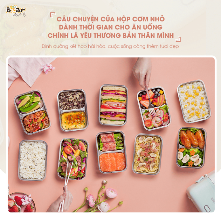 - Cấu trúc 2 tầng chia ngăn khoa học, giữ món ăn luôn đầy đủ vị và gọn gàng.