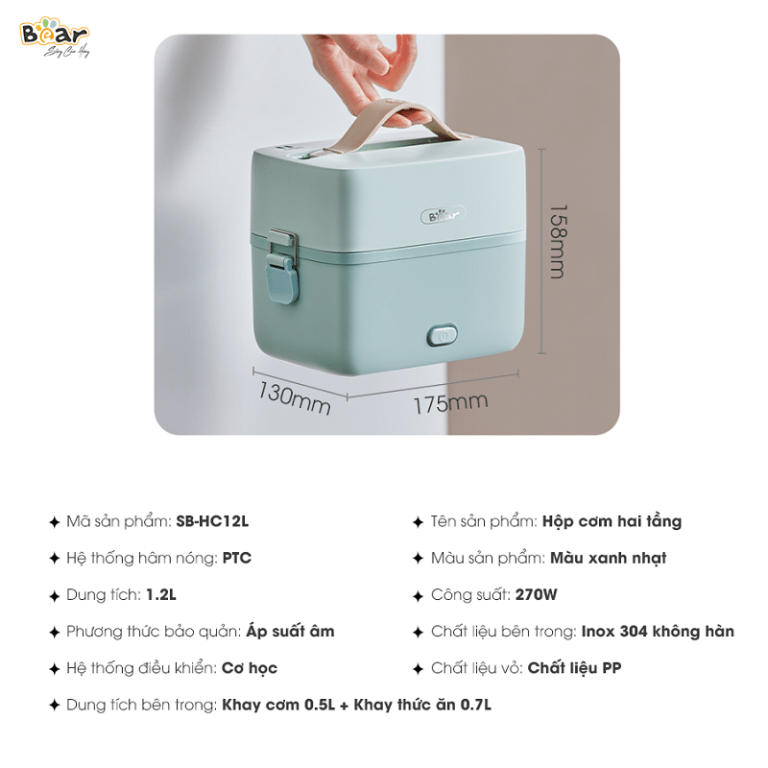 | Tên sản phẩm | Hộp cơm Bear 2 tầng SB-HC12L khóa kín, chống tràn | Bản Quốc tế |