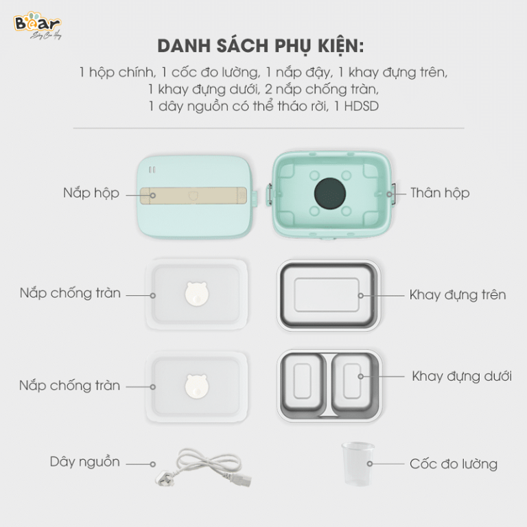 – Tỉ mỉ trong từng chi tiết: Với mong muốn đem đến cho người dùng những sản phẩm chất lượng nhất, Bear luôn chú trọng vào từng chi tiết thiết kế của chiếc hộp cơm. Với tay cầm mềm chống bỏng, người dùng có thể đem đến bất cứ đâu. Khóa được làm bằng thép chắc chắn không gỉ, an toàn và sử dụng lâu hơn so với các loại khóa làm bằng nhựa.