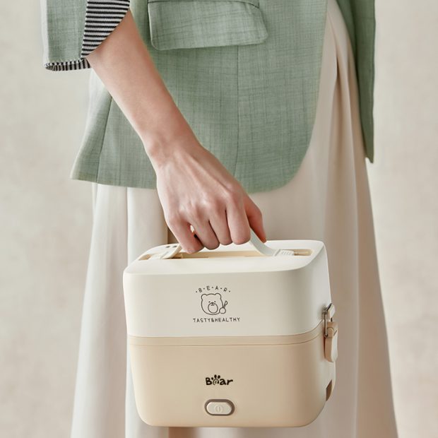 Hộp cơm điện Bear 1.2L LB-4H12C thiết kế mini như chiếc túi xách, thưởng thức cơm nóng tại văn phòng không cần lò vi sóng.