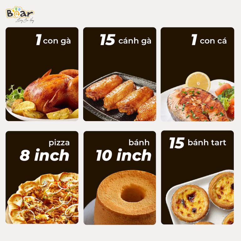– Làm bánh: Không chỉ dừng lại ở việc nướng thịt, lò nướng Bear còn là người bạn đồng hành tuyệt vời cho việc làm bánh. Tính năng điều chỉnh nhiệt độ chính xác giúp bạn nướng bánh ngọt hoặc bánh quy với độ giòn, vàng ươm như mong muốn.