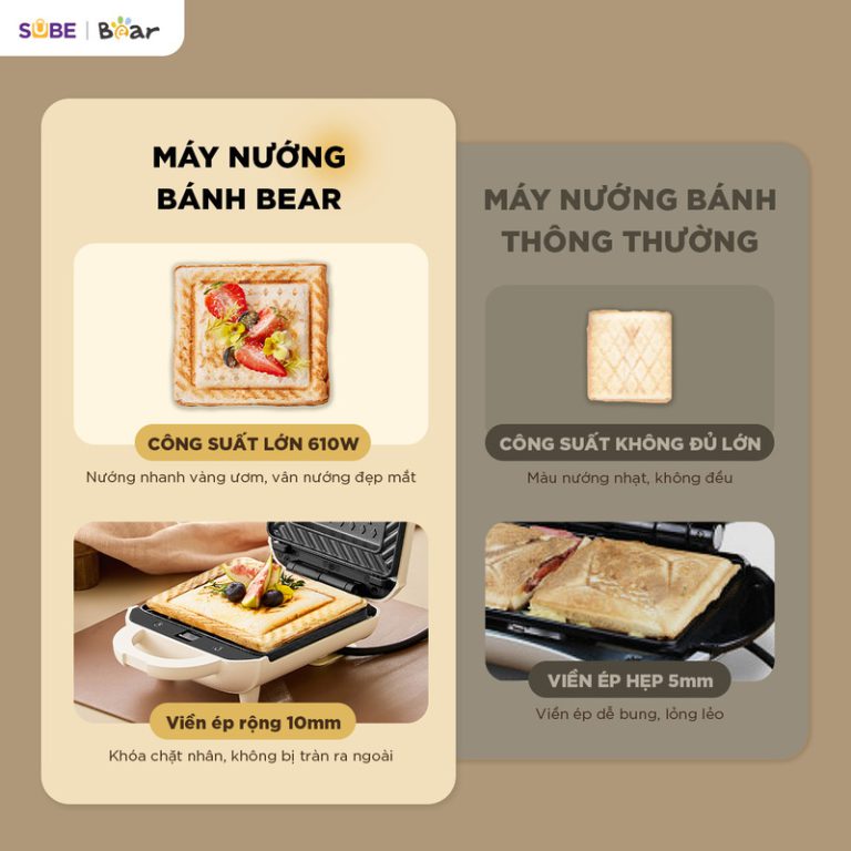 May nướng bánh 2 khay Bear SMA-5H07F55 sở hữu những cải tiến vượt trội, được thiết kế để mang lại trải nghiệm tiện lợi và hoàn hảo nhất cho người dùng.