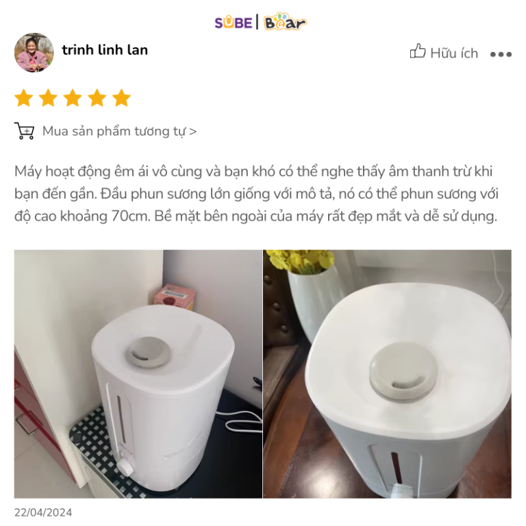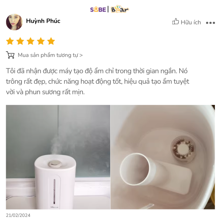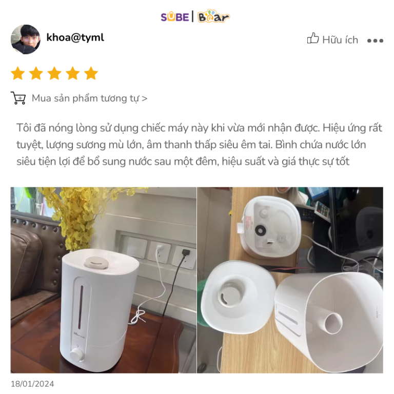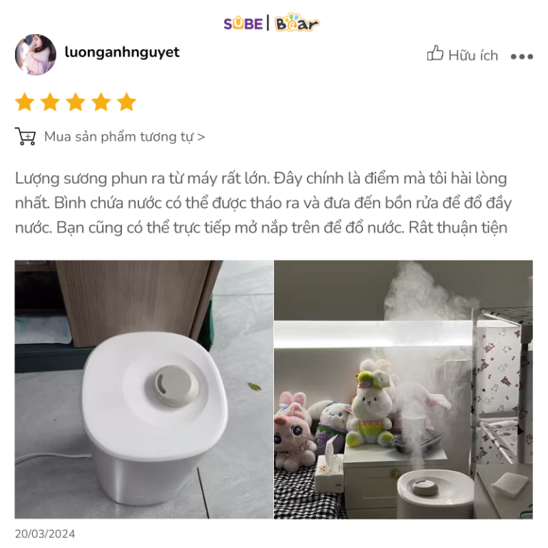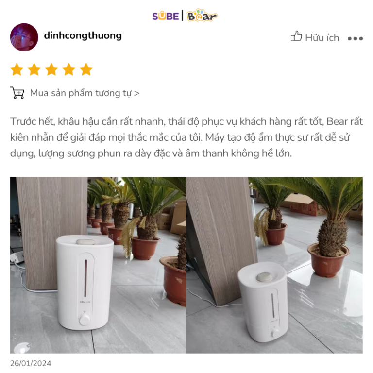 Máy phun sương Bear SB-TA50M nhận được nhiều phản hồi tích cực từ người dùng nhờ vào hiệu suất hoạt động vượt trội và thiết kế tiện dụng.