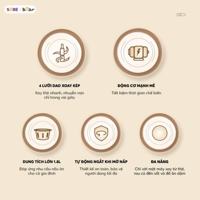 Mỗi đặc điểm của máy xay thịt Bear CH-5H03P36 đều được nghiên cứu kỹ lưỡng nhằm mang đến trải nghiệm tiện lợi, hiệu quả và an toàn nhất cho người dùng.